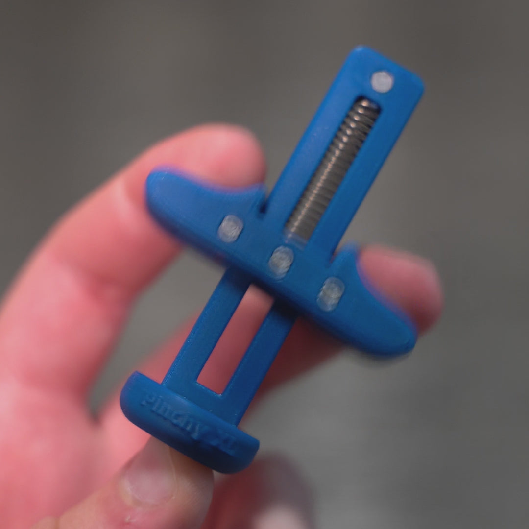 Pinch your stress away with the Pinchy XL, the extra-large version of the world's first pinching toy! With its innovative design and unique pinching motion, the Pinchy XL is perfect for anyone looking to focus or simply unwind. Its ergonomic design combined with a proprietary spring and bearing mechanism produces a satisfying, repeatable pinching motion to relieve stress, anxiety, and restlessness. Every Pinchy XL is 3D printed in various colors, hand-assembled in the USA, and sent to your door in a 100% compostable package.